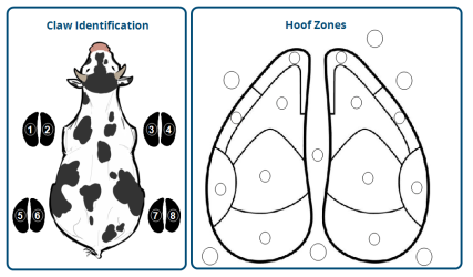 Dairy cattle typically have their hooves inspected and, if necessary, trimmed every 4–6 months. A strategic hoof-trimming program might evaluate hooves before first calving, between 60 and 150 days in milk, and before dry-off. Only "